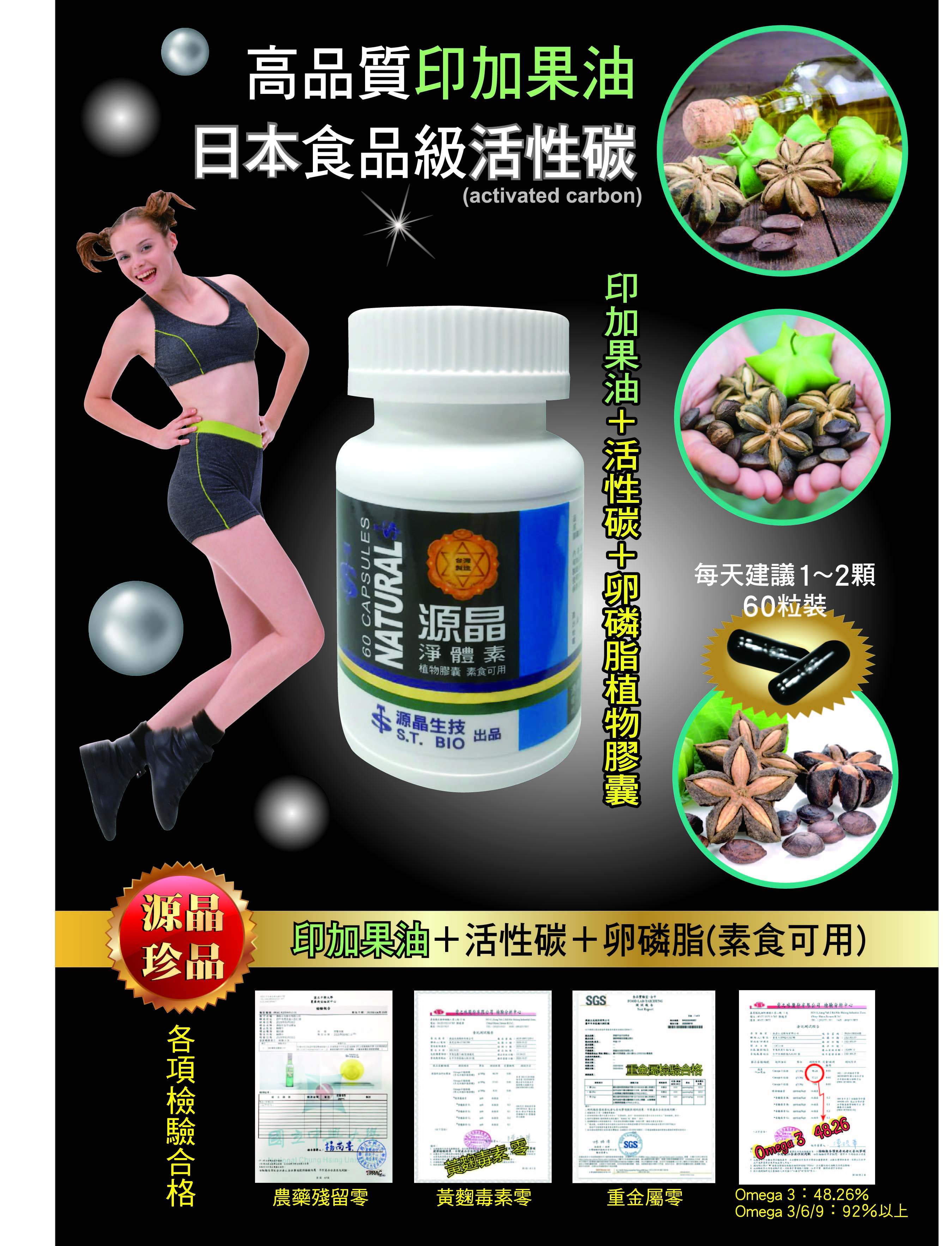印加果活、性碳(食品級) 、卵磷脂 植物膠曩